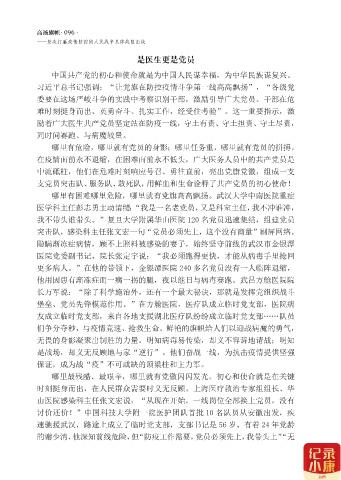 更多病人。”在他的带领下,金银潭医院 240 多名党员没有一人临阵退缩,