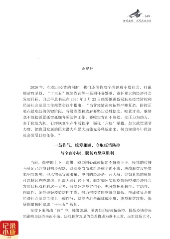 发展目标。习近平总书记在 2020 年 2 月 23 日统筹推进新冠肺炎疫情防控和