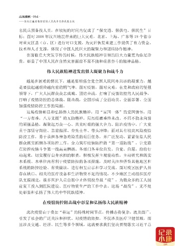 的顽强品格,凝聚起万众一心、共克时艰的强大合力。防治疫情中,广大党