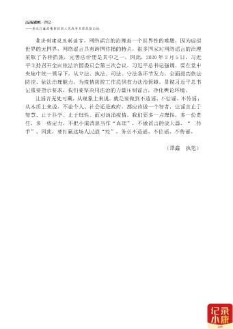 记重要指示要求,我们要坚决用法治的力量压制谣言,净化舆论环境。